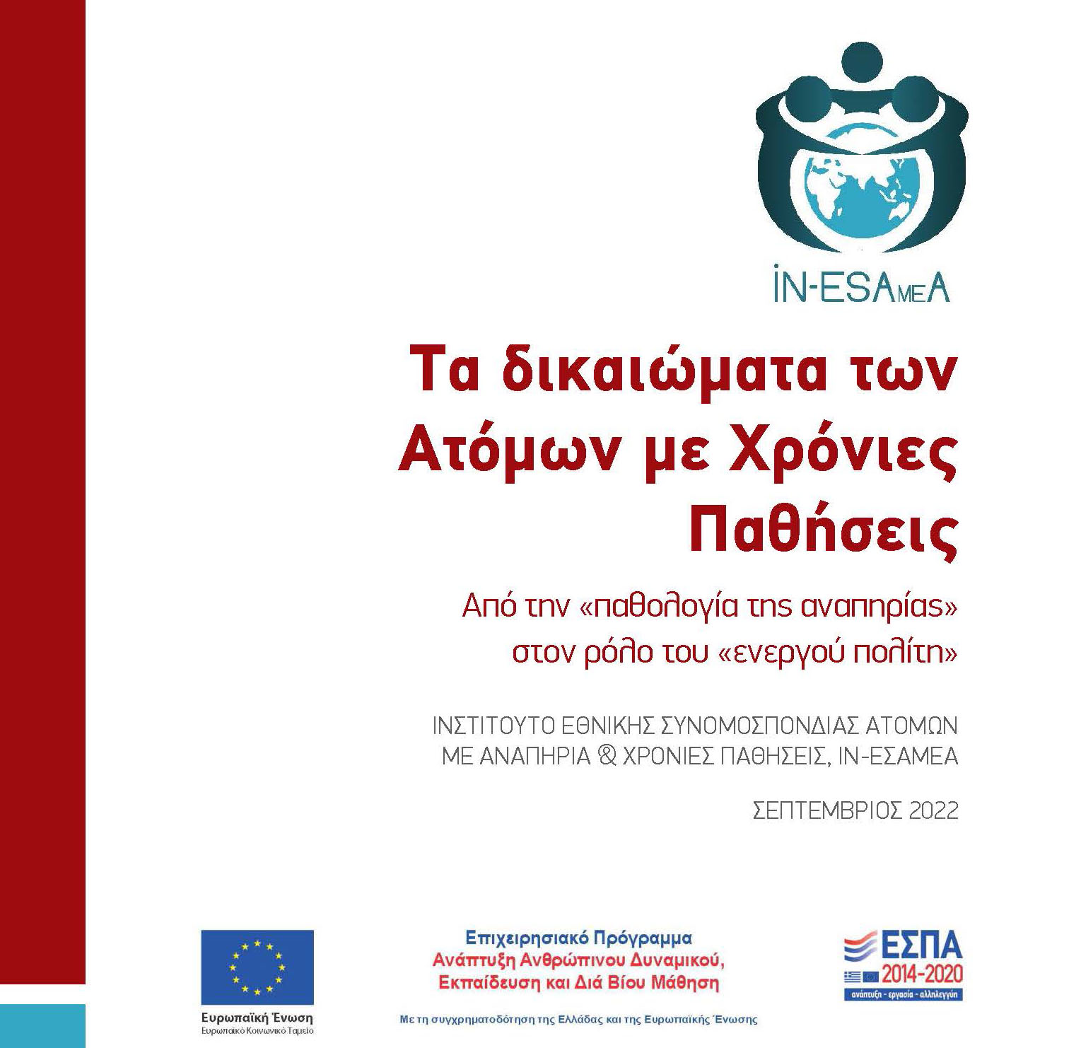 Η παρούσα έκδοση συγχρηματοδοτήθηκε από την Ελλάδα, από την Ευρωπαϊκή Ένωση (Ευρωπαϊκό Κοινωνικό Ταμείο), στο πλαίσιο της Πράξης «Προγράμματα Διά Βίου Εκπαίδευσης για την αναπηρία και υποστηρικτικές δράσεις», όπου δικαιούχος είναι το Ινστιτούτο Εθνικής Συνομοσπονδίας Ατόμων με Αναπηρία & Χρόνιες Παθήσεις (ΙΝ-ΕΣΑμεΑ) με κωδικό ΟΠΣ (MIS) 5133270.